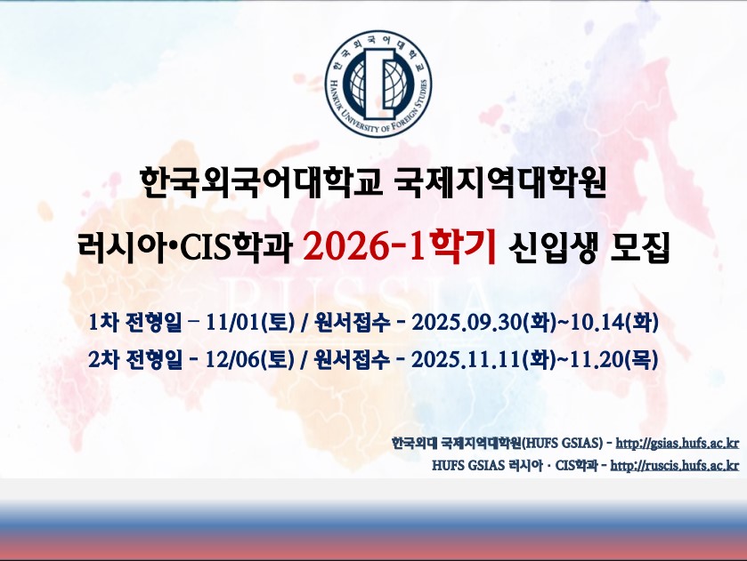 한국외국어대학교 국제지역대학원 러시아·CIS학과 2025년-2학기 1차 지원기간이 곧 시작됩니다.